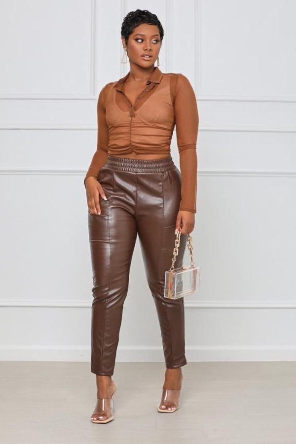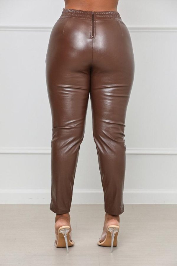 Women Bottoms | Lilly’s Kloset Work It Faux Leather Pants Brown