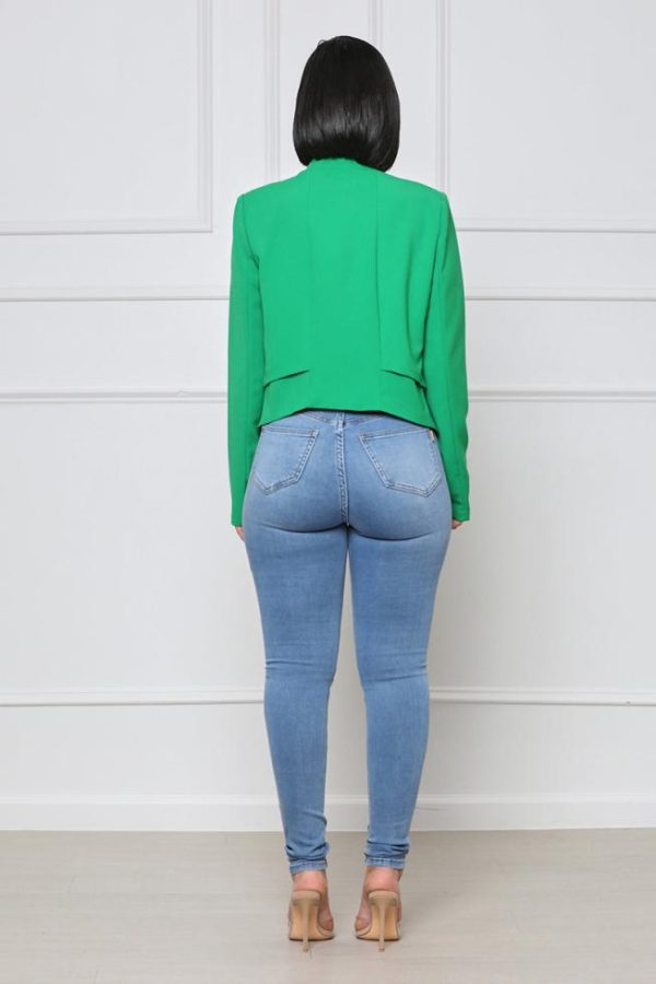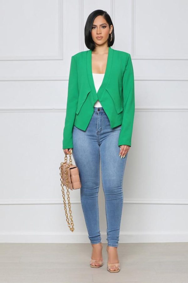 Add the perfect pop of color to your look with this In the Hamptons Front Open Blazer (Green) Featuring a fully-lined interior, open front, and padded long sleeves. Style with a white bodysuit, jeans, and high heels for a complete look.