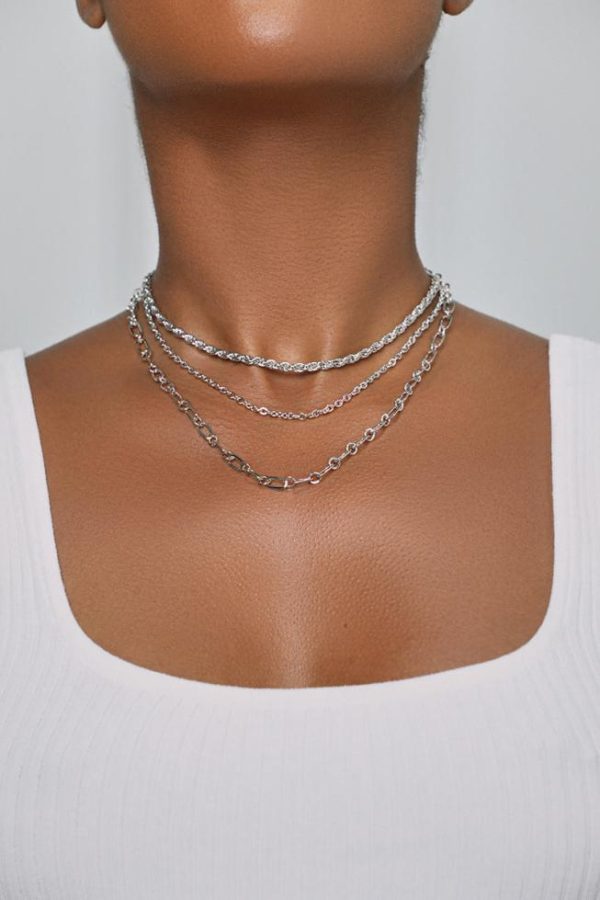 It matches with everything, but the details set it apart from all other plain necklaces. It features three layers of stylish silver chains for the perfect combination of edgy glam.Silver