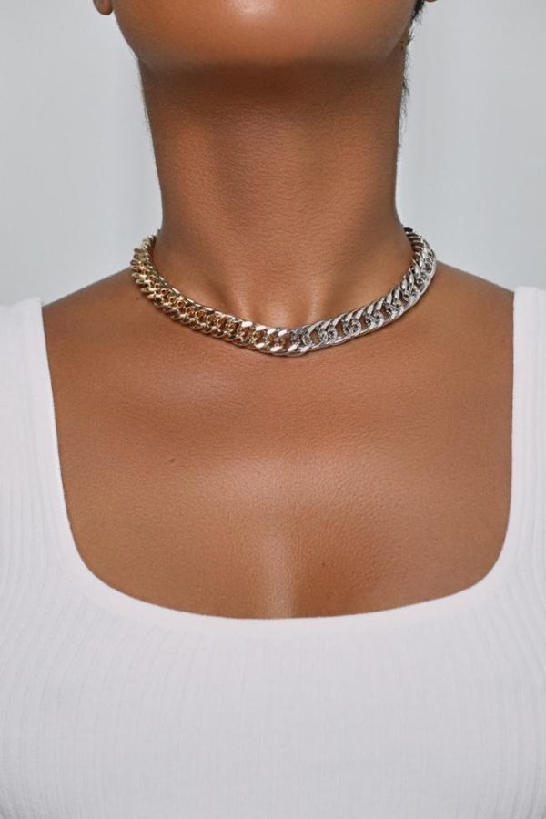 This edgy choker is a must-have this summer. Featuring a chain link detail in an ombre silver and gold design.Silver & Gold