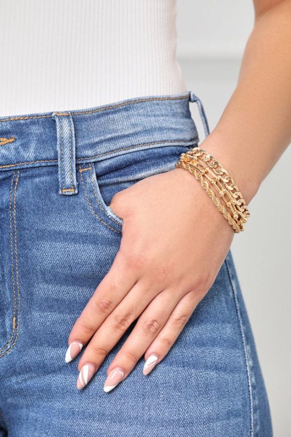 Add a touch of glam to your outfit of the day with this trendy bracelet. Featuring a 3-layered chain link design and magnetic closure.